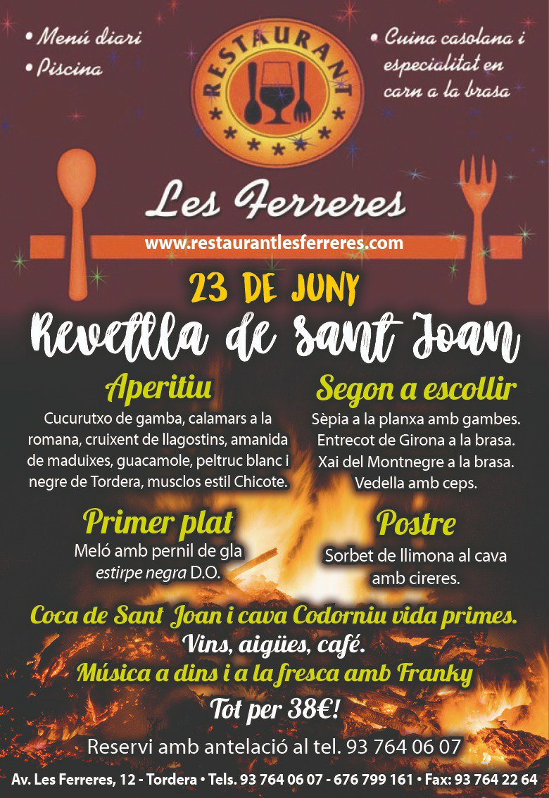 Revetlla de Sant Joan Publicado por restaurantlesferreres el junio 3, 2021junio 3, 2021 Comparte esto: Haz clic para compartir en X (Se abre en una ventana nueva) X Haz clic para compartir en Facebook (Se abre en una ventana nueva) Facebook Me gusta Cargando... Relacionado