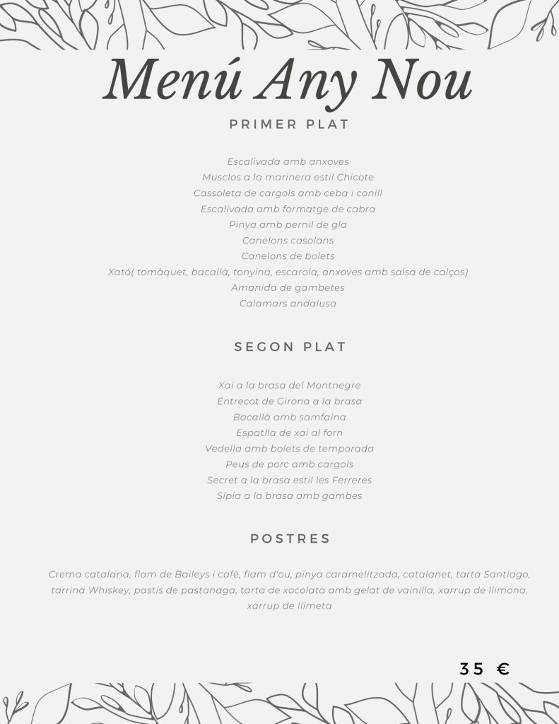 Menús festes nadal Publicado por restaurantlesferreres el diciembre 25, 2022 Menús festes begudes incloses IVA tambe Comparte esto: Haz clic para compartir en X (Se abre en una ventana nueva) X Haz clic para compartir en Facebook (Se abre en una ventana nueva) Facebook Me gusta Cargando... Relacionado